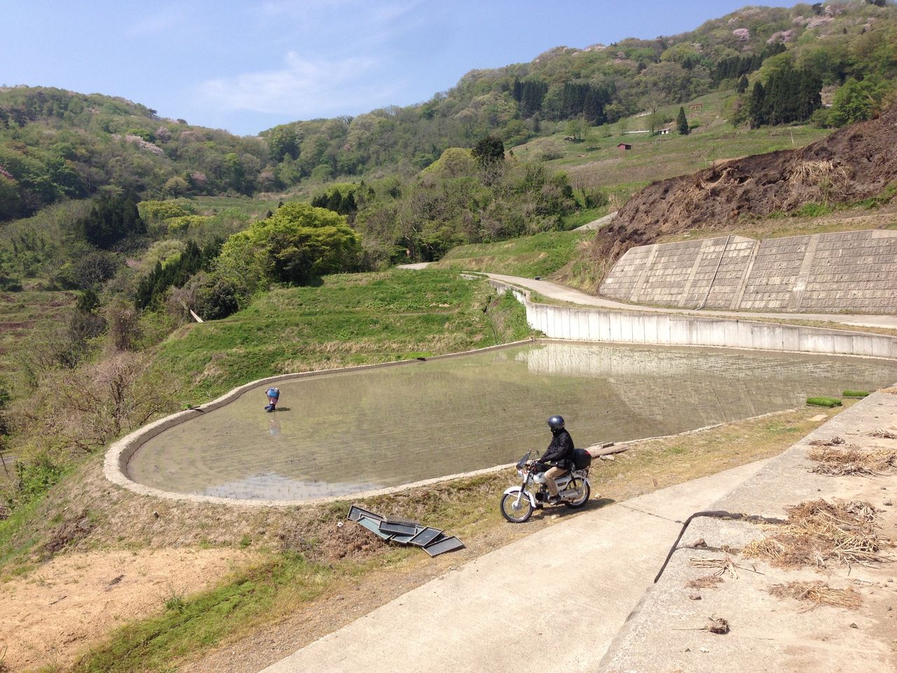 岩首の棚田を登ったライダーもこの風景に思わず写真で収めました。田植えと稲刈りの時の岩首ではこのような風景、今じゃあよく見受けられます。