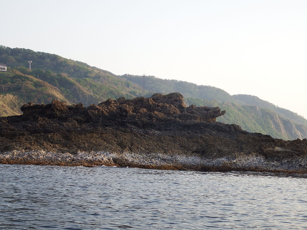 二つの亀はよく見れば石の質感が全然違っていました。沖の亀にはウミウの住みかを発見して、岸側の亀には小さい祠もありました。
