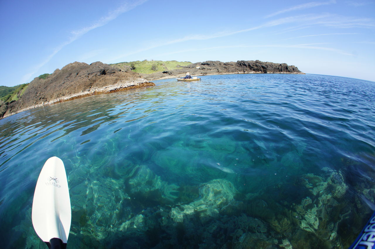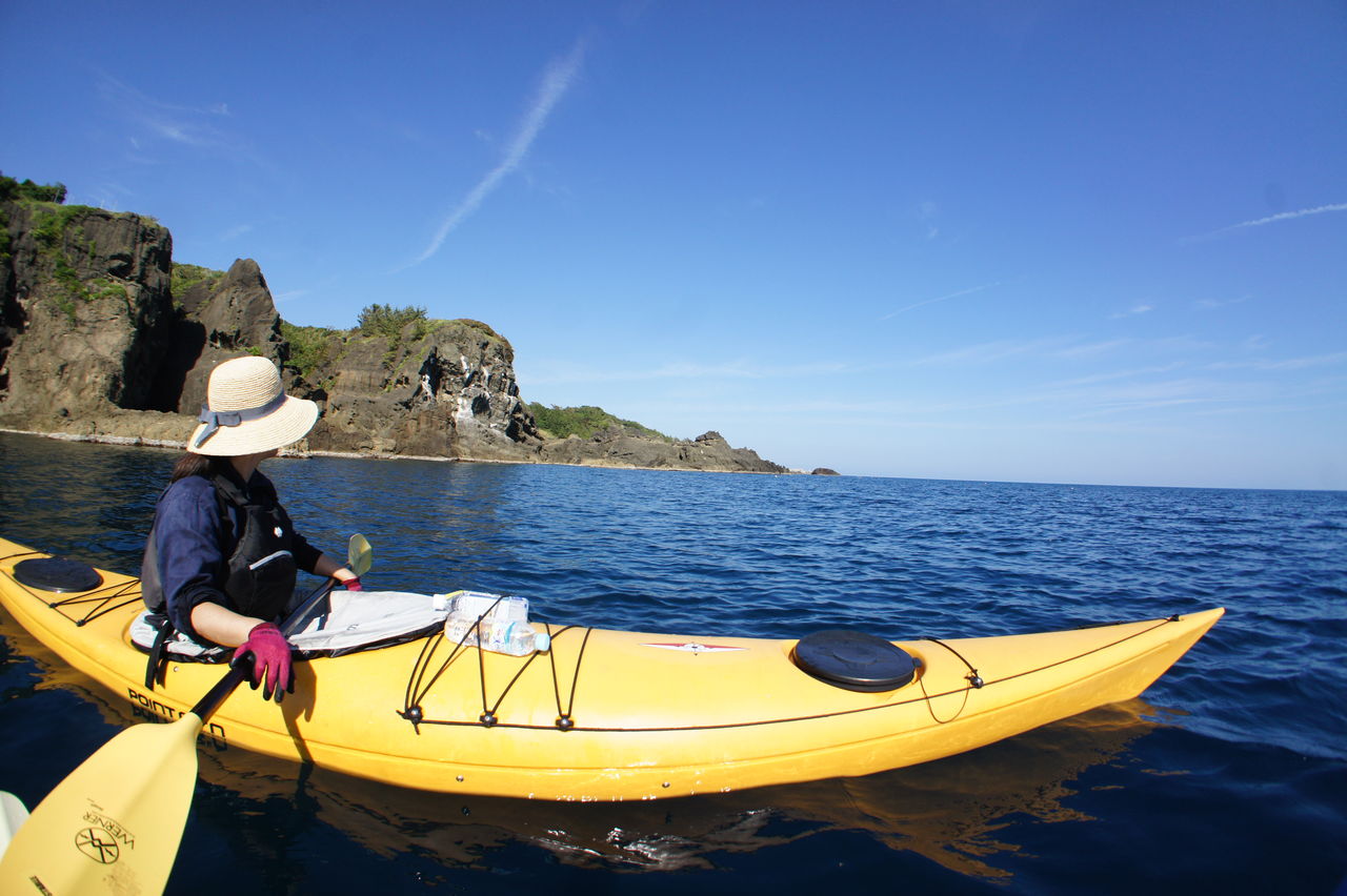7月半ば午後3時からのシーカヤックでの出港です。前回夕方に深浦をチャレンジしましたが、日差しのあるときに来たほうが絶対きれいと思いましたので、太陽の光が暑い午後に命知らずに出かけました。海の上は意外と風があってそこまで熱くなかったです。