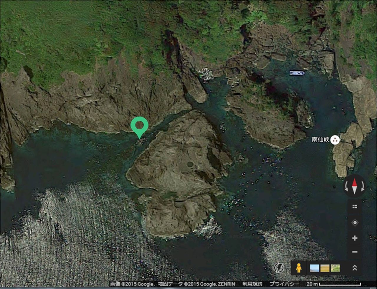 実はグーグルマップの衛星図上でもこの岩が確認できるほど水がきれいです。拡大してみてください。