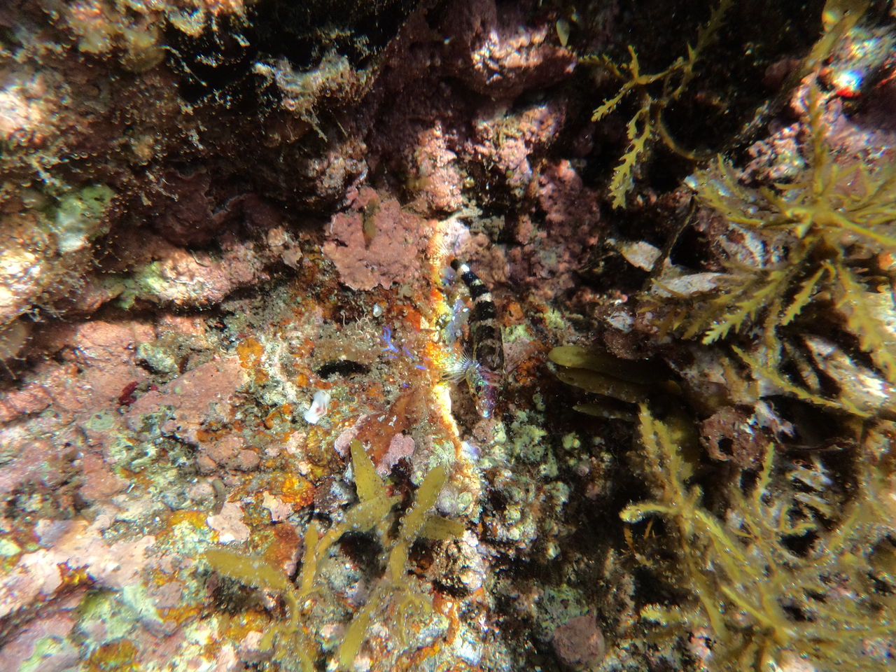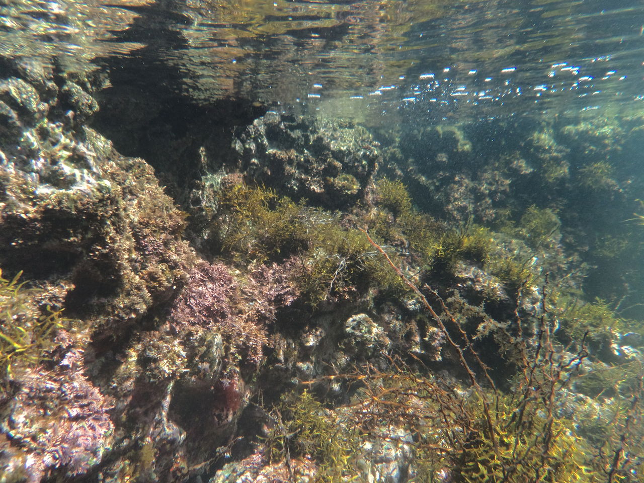 もう少し左に向けたら、なんだか小さい泡がぷくぷく。地下の真水が海に湧きでてるんですね、通りで魚豊富なんです。