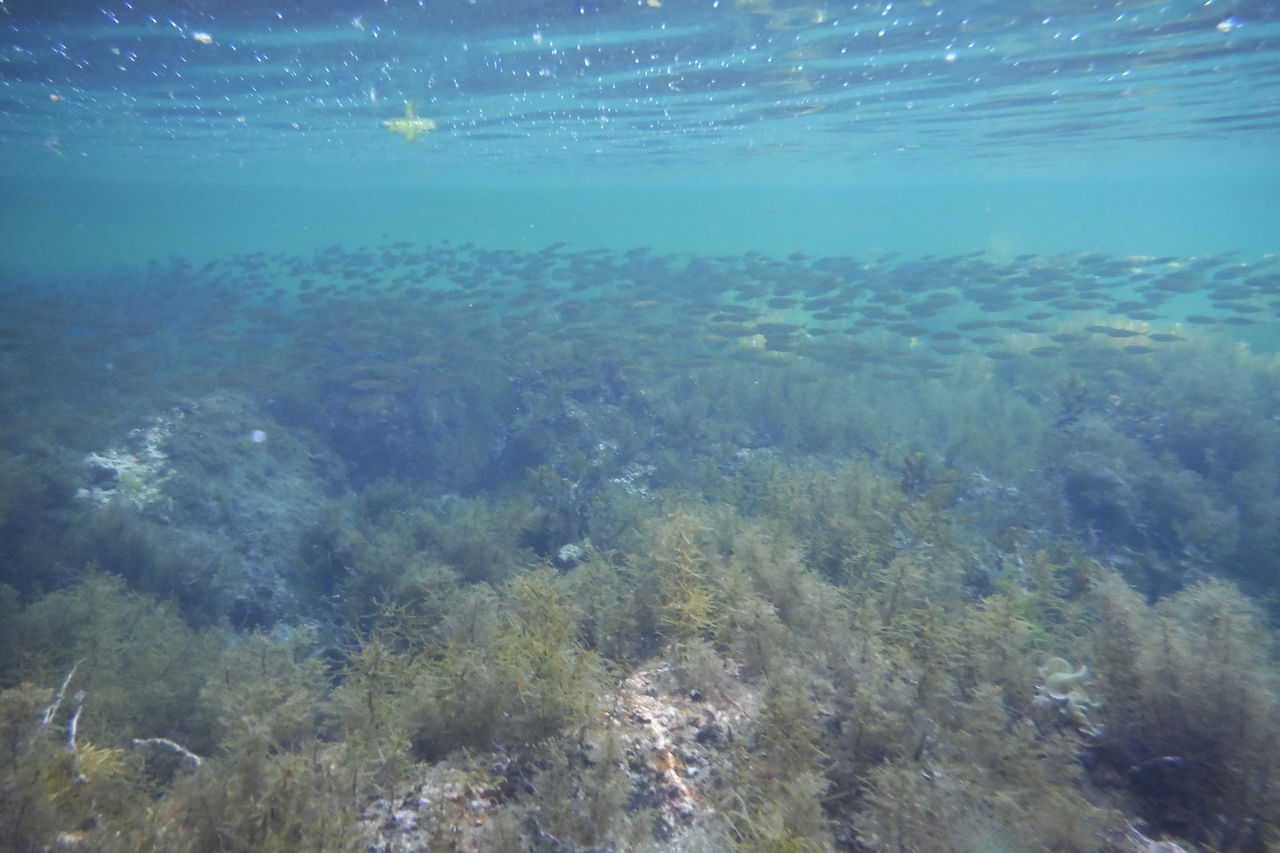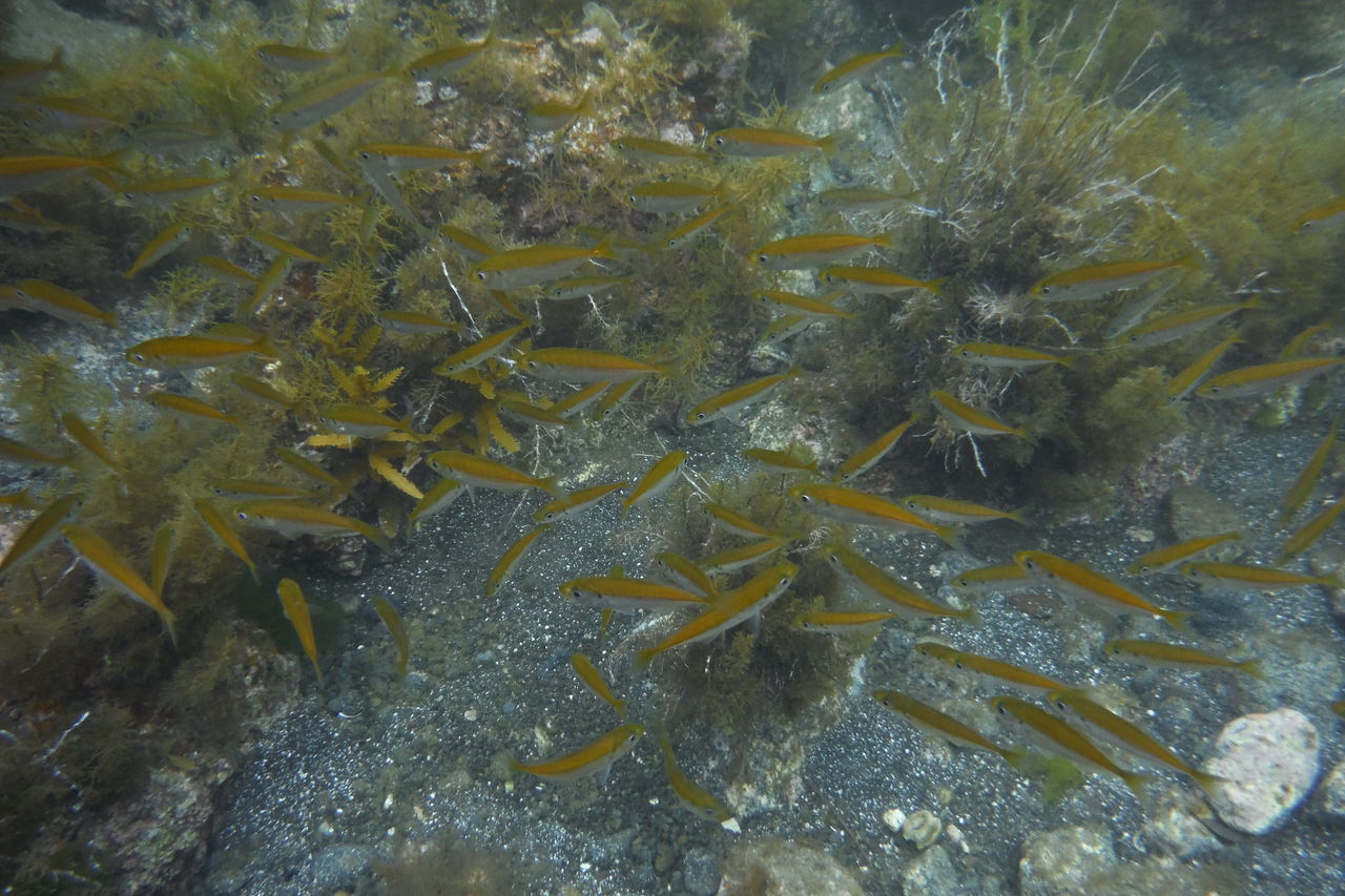 早速岩をたどって海に入ります。そしたら目の前にアジの大群がすぐそこに現れました。私はアジの群れに360度囲まれました。