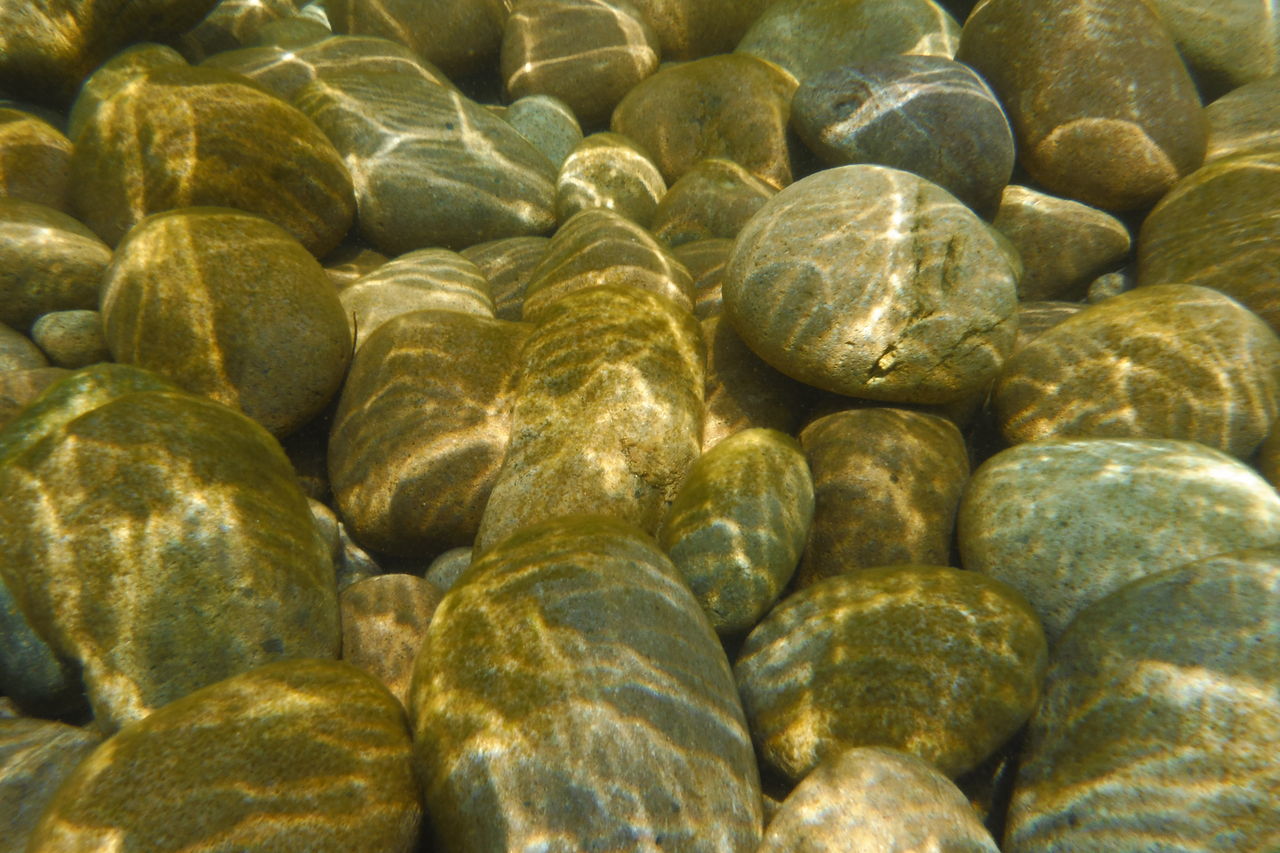 少し深いところはエメラルドグリーンに見えたりするんですが、岸辺はただただ透明です。