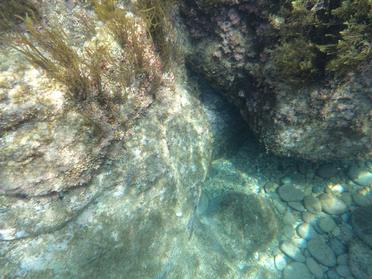 ゆらゆらと進んで行ったら、何かへばりついてるもの発見!「エイ!」と声に出したら逃げられました。