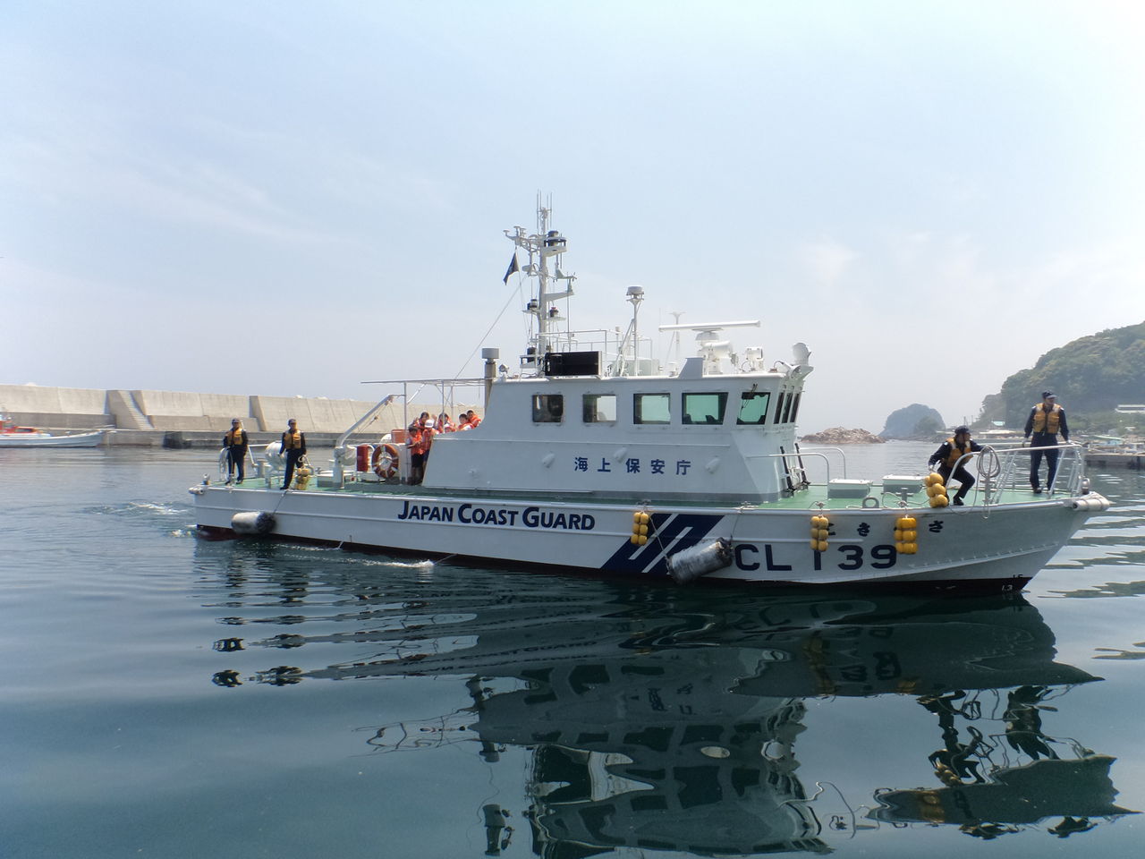 さて、2時間目の授業は水産加工で、イカとカワハギのさばき方を学びました。その後、海上保安庁「ときくさ」に乗船し姫崎灯台付近まで巡回した様です。保育園児も加わり、タッチ・プールも楽しみました。