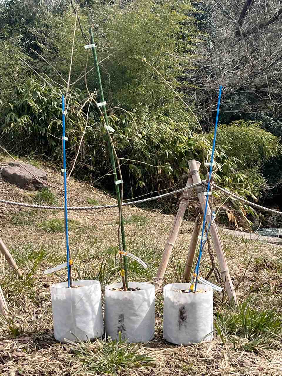 つぎ木による増殖が成功し、3本の苗木が里帰りすることになりました。