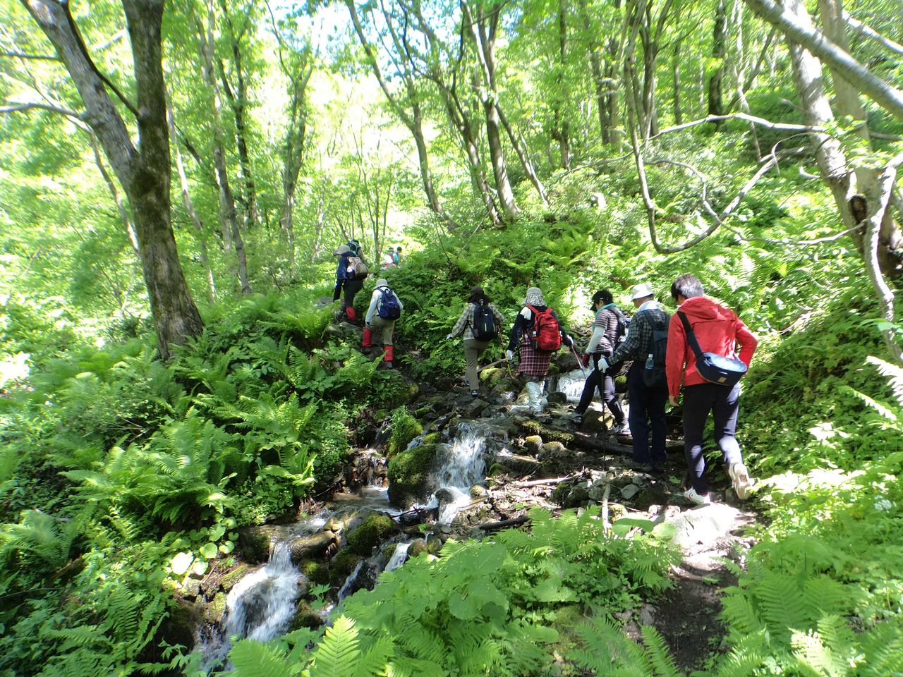尾根歩きはとても暑くなりそうなので、皆さん飲料と果物をたくさん詰め、準備万端で臨みます。