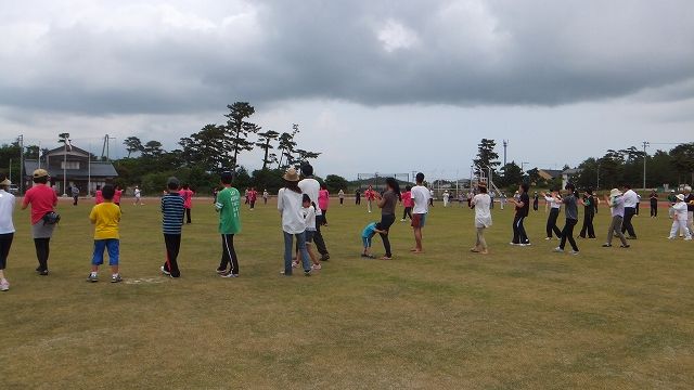 当日は夏休みのラジオ体操の時間に実施、スタッフは6時半に集まりまずはプロの塗装屋さんから塗り方の指導を受けます。