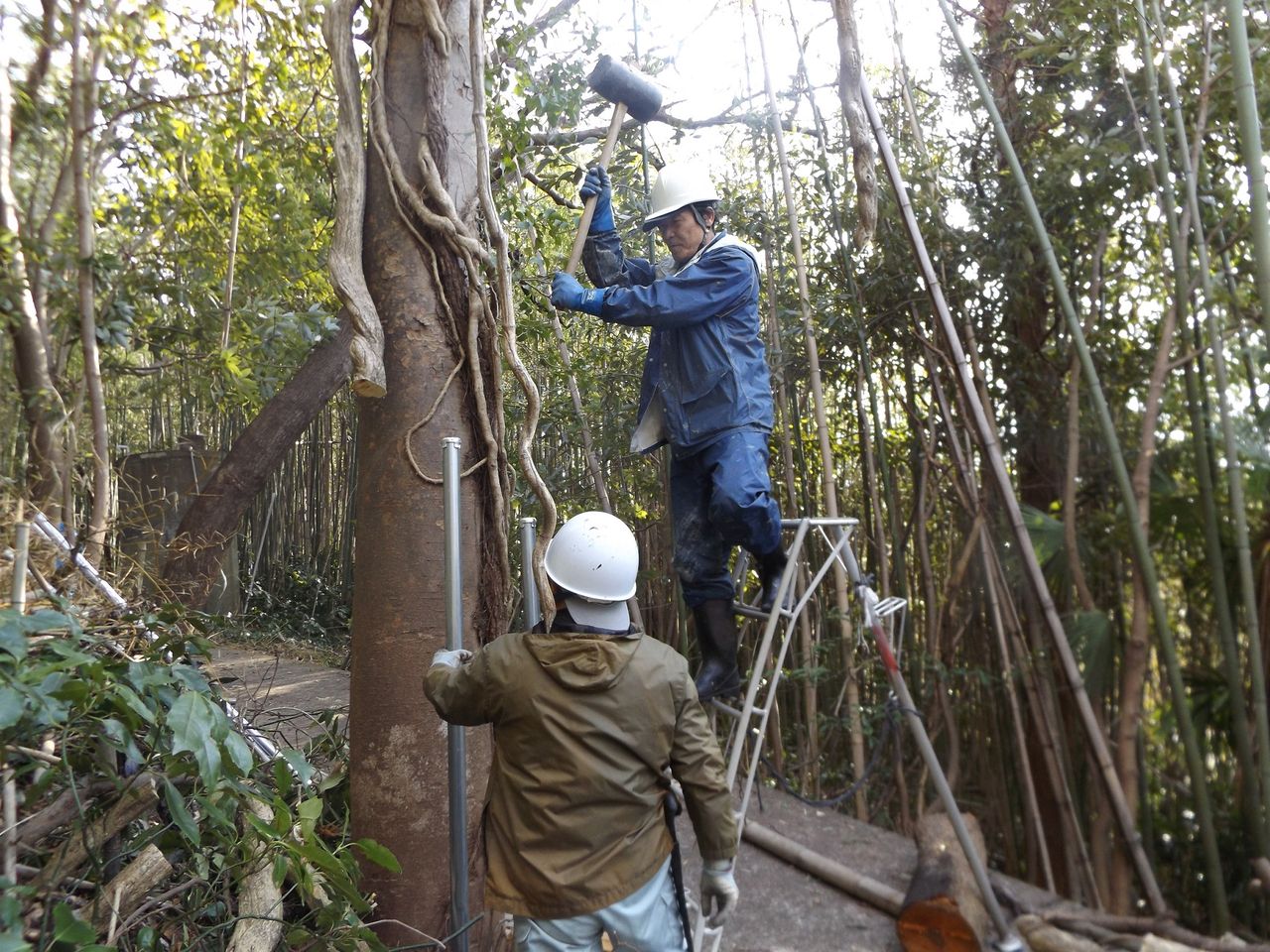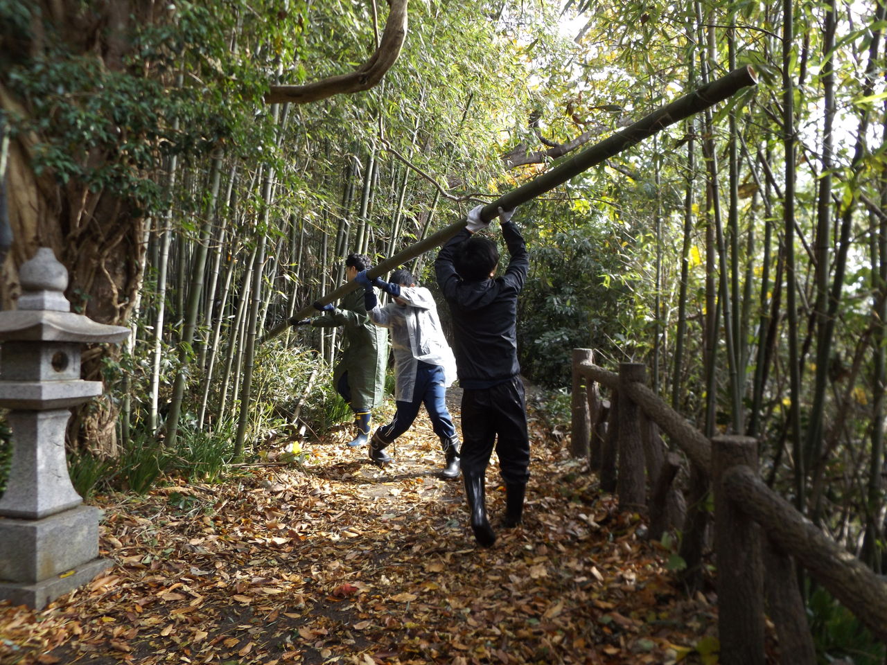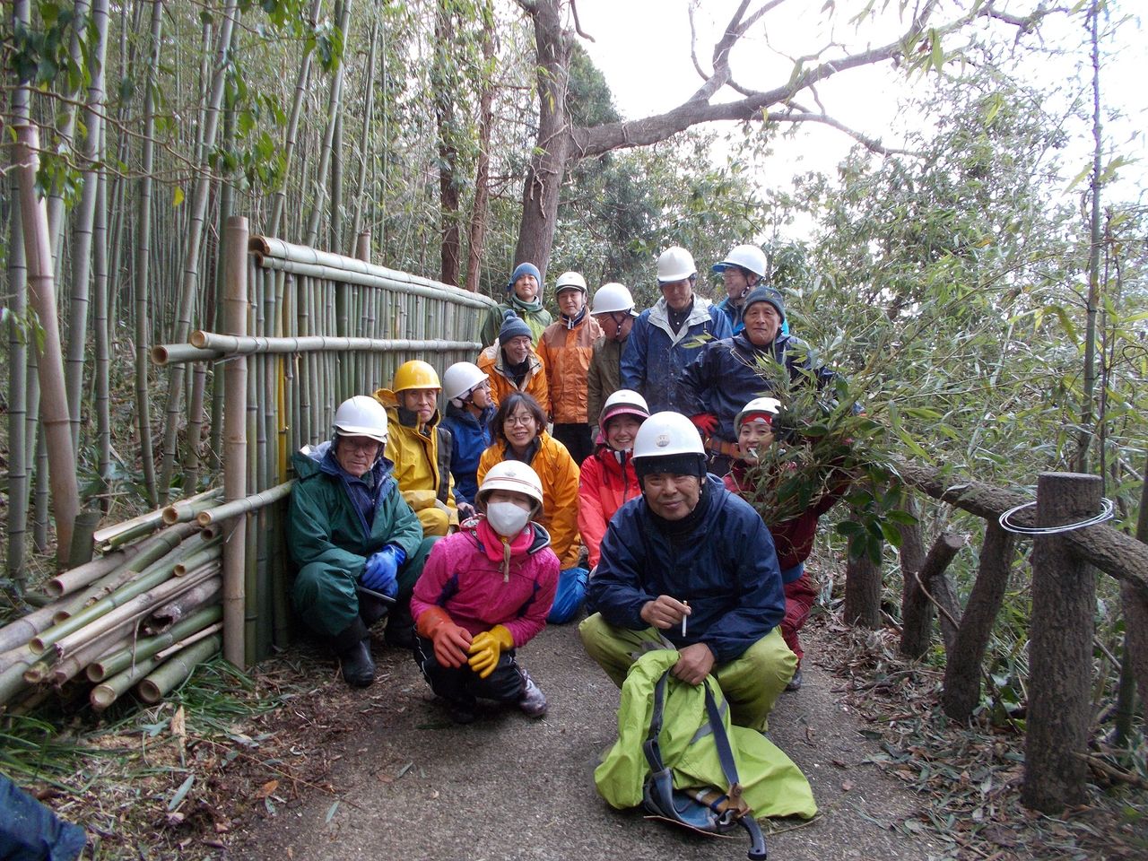 そして今年度最後の活動では、竹林沿いの歩道に竹垣を設置。